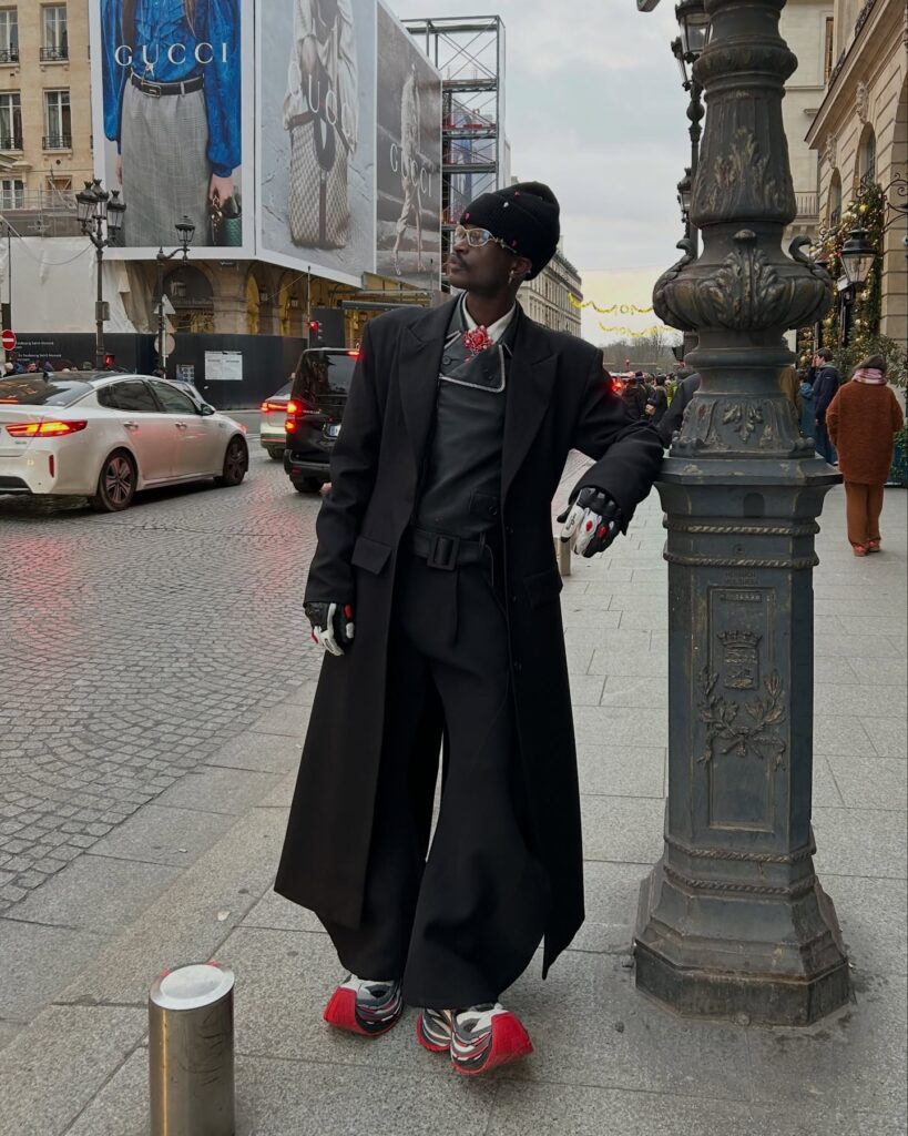 Frequently seen and recognized at Paris and Milan Fashion Weeks, Abouβs presence is unmistakable. His conceptual outfits are often photographed and shared by the public and media, not because they are excessive, but because they are intentional.